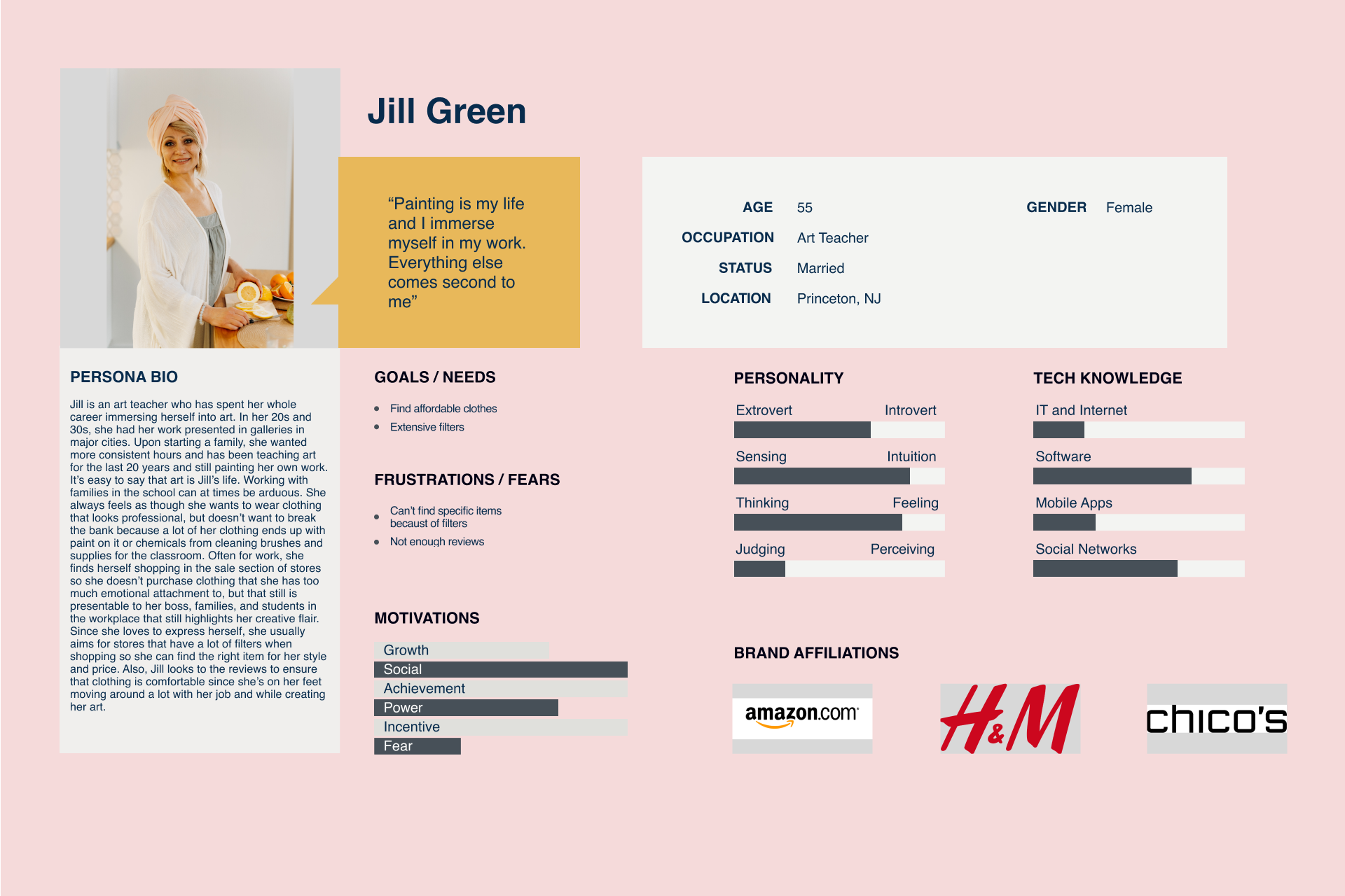 Below is a persona helped me ideate what embodies a typical user of Mirror and what types of behaviors they might partake in and the motives behind them.